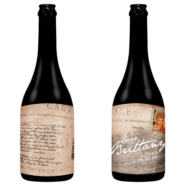 Using influence from old French postcards designed a bottle label for Angry Orchard's "Dear Brittany" in collaboration with Joe Dion.